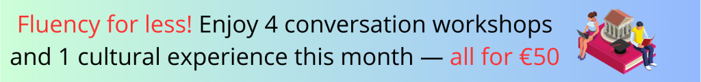 A bundle with all our workshops at a reduced price (4 conversation workshops + 1 cultural workshop). Who says you need to be in Spain to study Spanish immersively?